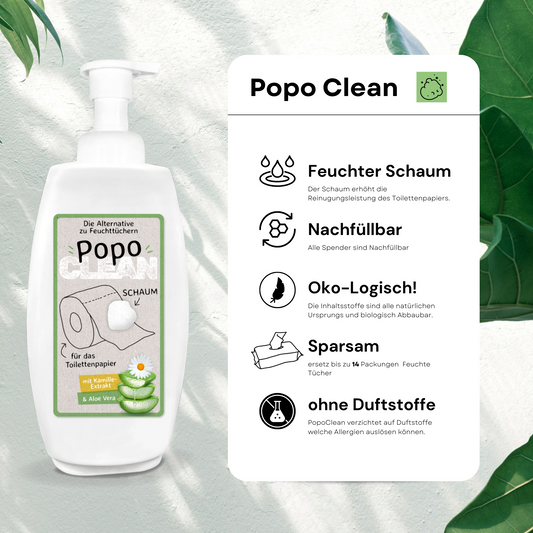 PopoClean ist die ideale Lösung für alle, die auf der Suche nach einer nachhaltigen Alternative zum feuchten Toilettenpapier sind.